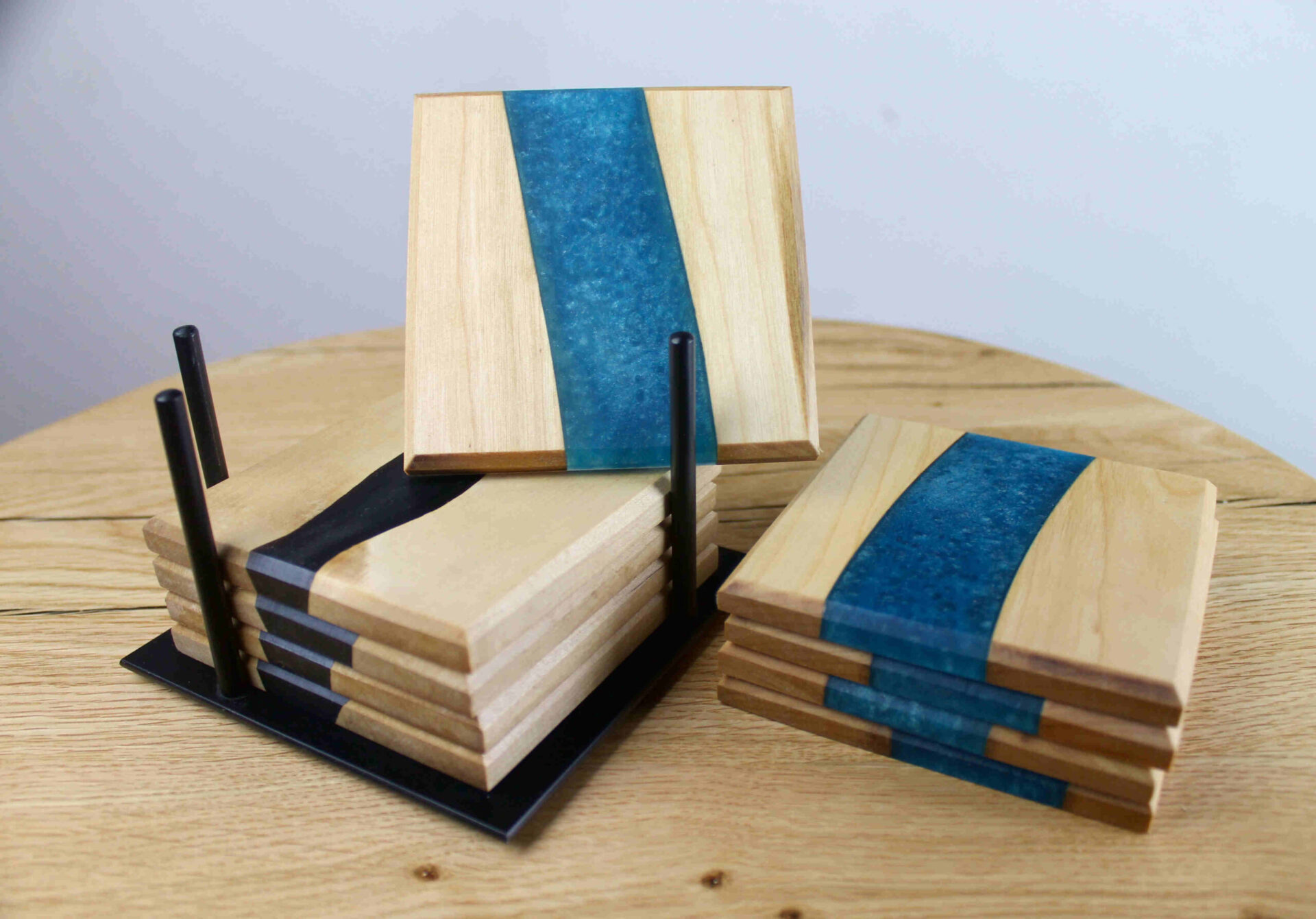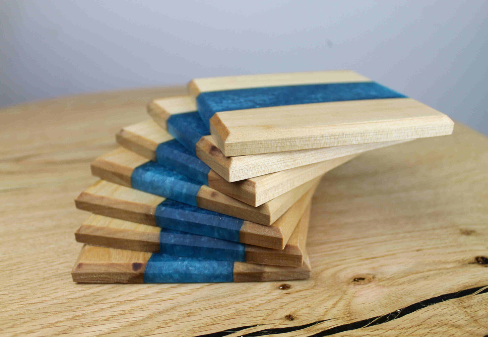 Dat kan gelukkig met deze stijlvolle en kleurrijke onderzetters! De onderzettertjes meten 10 op 10 cm en zijn gemaakt van hout en epoxy. Eén set bestaat uit vier onderzetters.